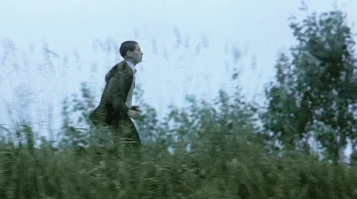Unlike the track back from the street in the earlier passage, this is marked as a point-of-view shot, and as such is more clearly tied in to the film’s narrative flow as this is figured through the protagonist’s discovery and exploration of an unfamiliar, fascinating place. At the same time, the world visible through the window opening, the slow movement towards it, and finally the trope of climbing into that world ‘with’ the character invite a bodily response that exceeds any engagement with the story or identification with the character. The light-saturated view itself, framed as it is like a picture on the wall – or more aptly, perhaps, like a film on a cinema screen – offers the vision of an intriguing, inviting – altogether different – world.1 The underscoring of the film’s haunting musical theme throughout the passage intensifies the otherworldliness of the space that is framed and contained by the window opening, and sustains the curious satisfaction that is derived from the moment when the frame of the picture melts into and beyond the film frame as we enter fully into that other world. The entire shot, involving as it does a steady, slow forward movement towards an image at a distance, an image that eventually fills the entire film frame, is formally reminiscent of Michael Snow’s rich, rigorous and relentlessly self-reflexive forty-five-minute experimental film Wavelength (1967).2 While it would be misleading to posit an equivalence between the two, the similarities are nonetheless telling in that in both, the ‘frame within a frame’ contains an elemental image – waves in the Snow film, a field of wheat in Ratcatcher – an image that contrasts in every way with each film’s surrounding ‘real’ world; and that in both films, cinema’s unique capacity to draw the viewer into the worlds that it creates is, paradoxically, both alluded to and enacted, inviting a response that combines involvement and distance.