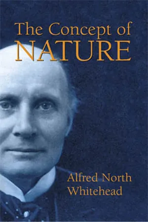 But sense-perception has in it an element which is not thought. It is a difficult psychological question whether sense-perception involves thought; and if it does involve thought, what is the kind of thought which it necessarily involves. Note that it has been stated above that sense-perception is an awareness of something which is not thought. Namely, nature is not thought. But this is a different question, namely that the fact of sense-perception has a factor which is not thought. I call this factor ‘sense-awareness.’ Accordingly the doctrine that natural science is exclusively concerned with homogeneous thoughts about nature does not immediately carry with it the conclusion that natural science is not concerned with sense-awareness.
