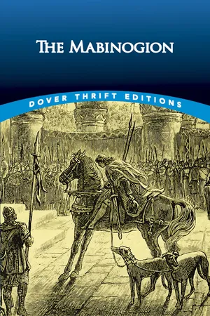 And the youth pricked forth upon a steed with head dappled grey, of four winters old, firm of limb, with shell-formed hoofs, having a bridle of linked gold on his head, and upon him a saddle of costly gold. And in the youth’s hand were two spears of silver, sharp, well-tempered, headed with steel, three ells in length, of an edge to wound the wind, and cause blood to flow, and swifter than the fall of the dewdrop from the blade of reed-grass upon the earth when the dew of June is at the heaviest. A gold-hilted sword was upon his thigh, the blade of which was of gold, bearing a cross of inlaid gold of the hue of the lightning of heaven: his war-horn was of ivory. Before him were two brindled white-breasted greyhounds, having strong collars of rubies about their necks, reaching from the shoulder to the ear. And the one that was on the left side bounded across to the right side, and the one on the right to the left, and like two sea-swallows sported around him. And his courser cast up four sods with his four hoofs, like four swallows in the air, about his head, now above, now below. About him was a four-cornered cloth of purple, and an apple of gold was at each corner, and every one of the apples was of the value of an hundred kine. And there was precious gold of the value of three hundred kine upon his shoes, and upon his stirrups, from his knee to the tip of his toe. And the blade of grass bent not beneath him, so light was his courser’s tread as he journeyed towards the gate of Arthur’s Palace.