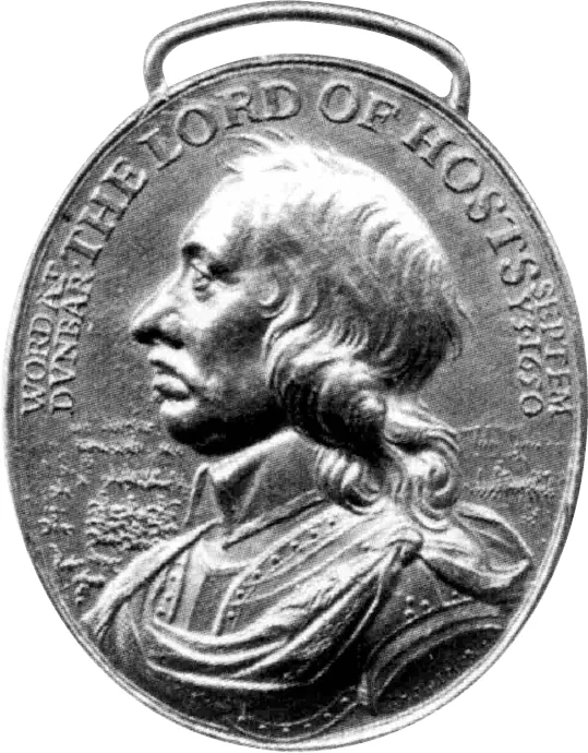 Parliamentary medal for the battle of Dunbar, 1650. Cromwell asked that only Parliament â as the overall source of authority â be shown on the medal, but in the end the Commons decided to add his effigy as Lord General of the forces that decisively defeated the Scots. The medal has some claim to be the first intended general issue.