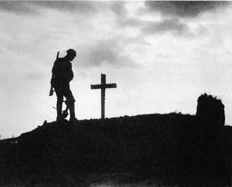 On 22 August 1917 at Pilkem Ridge near Ypres, Ernest Brooks took one of the iconographic photographs of the Great War. Head bowed, rifle on his back, a soldier is silhouetted against the going down of the sun, looking at the grave of a dead comrade, remembering him. A photograph from the war â the Battle of Third Ypres (or Passchendaele as it is better known) was still raging, the armistice was fifteen months distant â it is also a photograph of the way the war will come to be remembered. It is a photograph of the future, of the futureâs view of the past. It is a photograph of Binyonâs poem, of a sentiment. We will remember them.