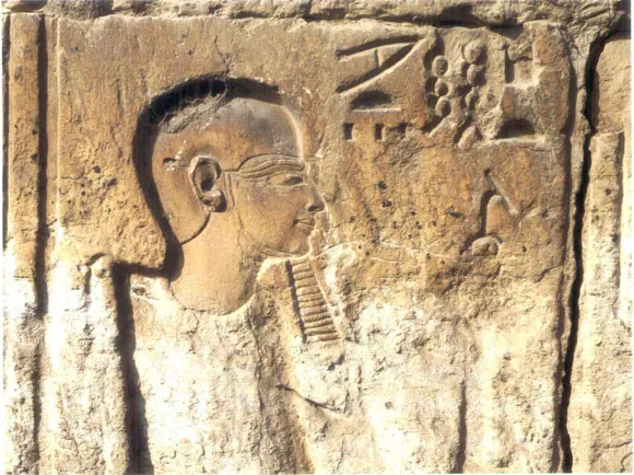 The god Ptah, Lord of Memphis. Detail of sunk relief from the so-called Small Temple of Ptah of Ramesses II. Kom al-Rabiaâa, Mit Rahina (photo: Milan Zemina).