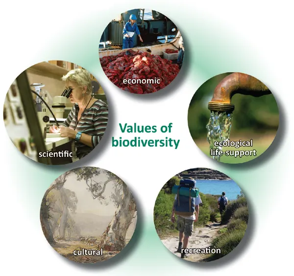 Next, biodiversity provides cultural values via the expression of identity or through spirituality or an aesthetic appreciation. The celebration in our National Anthem that ‘our land abounds in nature’s gifts of beauty rich and rare’ reflects an attachment to bio...