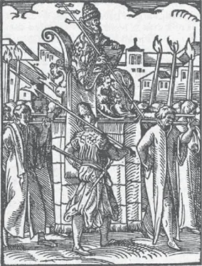 Unsurprisingly, all the roads of medieval Roman Catholicism led to Rome. The apostle Peter, to whom Jesus had said ‘You are Peter, and upon this rock I will build my church’, was thought to have been martyred and buried there, allowing the church to be built, quite literally, upon him. And so, as once the Roman Empire had looked to Rome as its mother and Caesar as its father, now the Christian empire of the Church looked still to Rome as its mother, and to Peter’s successor as father, ‘papa’ or ‘pope’. There was a slightly awkward exception to this: the Eastern Orthodox Church, severed from the Church of Rome since the eleventh century. But every family has a black sheep. Other than that, all Christians recognized Rome and the pope as their irreplaceable parents. Without Father Pope there could be no Church; without Mother Church there could be no salvation.