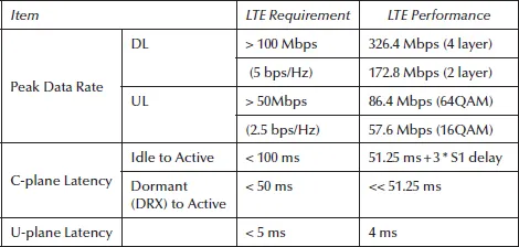 LTE Rel-8 is one of the primary broadband technologies based on Orthogonal Frequency-Division Multiplexing (OFDM), which is currently being commercialized. During 2005, LTE and System Architecture Evolution (SAE) study items were set up in 3GPP. Both operators and manufacturers were keen to push these study items because they were facing competition from other technologies such as WiMAX. Operators are looking for significant improvements compared to current UMTS releases that provide an architecture that is better suited to the shift from circuit-switched communications toward packet data and a radio technology that enables spectrum refarming. LTE Rel-8 provides high peak data rates of 150 Mbps (2x2 MIMO) on the downlink and 75 Mbps on the uplink for a 20-MHz bandwidth and allows flexible bandwidth operation of from 1.4 MHz up to 20 MHz. LTE Rel-8, which is mainly deployed in a macro/micro cell layout, provides improved system capacity and coverage, high peak data rates, low latency, reduced operating costs, multiantenna support, flexible bandwidth operation, and seamless integration with existing systems. Not only is OFDMA good for single cell, but also a better solution may be optimized for full intercell interference coordination. A comparison of the requirements and performance results of LTE is shown in Table 1.1.