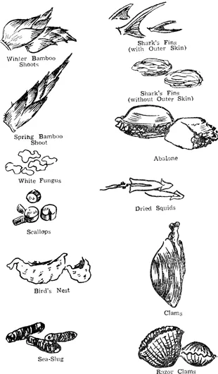 The fundamental difference between Chinese and Western food lies in the method of cooking, not in the materials. There are two Chinese proverbs saying ‘Feed moderately on wholesome food; garden herbs surpass rich viands,’ and ‘Only eat fresh fish and ripened rice.’ From these two proverbs we understand that a delicious dish is not estimated by its cost but by the selection of the best types of foodstuffs and the choice of the right material for each particular dish.