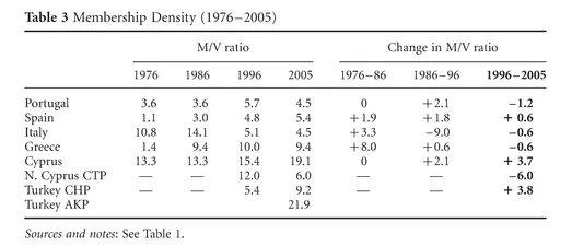 How do South European parties fit into this picture of declining membership? Before answering the question, it is important to stress that the data we present here need to be viewed with caution. The articles in this issue report aggregate figures that refer to the total number of individual members claimed by each party. More often than not these data are inflated. As party leaders and officials consider the level of membership an indicator of legitimation to be used both outside (with the media) and inside the party (in internal battles), the tendency to 'adjust' the rolls is very common. Any researcher who has ever tried to get membership data from party officials, however, knows only too well that there is no way of checking the reliability of these figures. It is only when party leaders themselves decide to clean up the files that we can get more truthful information on the extent of their membership. In this context, two examples are in order. In Portugal the decision made by the new PSD leader, Marcelo Rebelo de Sousa, to clean up the membership files in 1996 resulted in a decrease of almost 60 per cent in the number of members. In Turkey the clientelistic tradition of the parties, the habit of local party officials of increasing the number of delegates they control by enrolling friends and relatives and the absence of any obligation on members to pay dues result in exceptionally large party memberships. As a consequence, when in 2000 CHP members were asked to reregister, the membership figure plummeted from almost two million to a meagre 170,000 (see Jalali et al., this issue). Notwithstanding these problems, we believe that membership data provided by parties may still be a reliable source to identify trends and a useful tool for comparative purposes.
