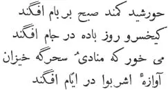 ![]() | One morn from out our tavern came a cry:— “Rise! Tavern-haunting madman. Time doth fly. Rise! Let us fill our measures with fresh wine Ere Fate doth fill our measure ’neath the sky.” |
