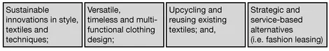 This chapter summarises the thesis ‘Slow Fashion: Tailoring a Strategic Approach towards Sustainability’ written collaboratively by Carlotta Cataldi, Maureen Dickson and Crystal Grover in 2010 during Master’s studies in Strategic Leadership towards Sustainability at the Blekinge Institute of Technology in Sweden. It outlines the strategic planning methods used in the research and proposes a set of recommendations that can serve as guidelines for established or emerging fashion professionals that are embarking on a sustainable business journey.
