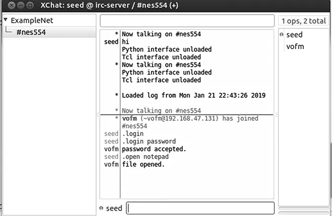 Stage 3ābotnet activity stage: The botnet activity represents the set of actions and attacks (e.g., DDoS, scanning, etc.) that are performed by bots in response to commands that are issued by the botmaster [15ā17]. A compromised hostās bandwidth is an important information that indicates the hostās capability in launching attacks, especially DDoS. Hence, bots estimates the hostās bandwidth by sending data to many servers. Figure 1.2 shows an example of an IRC-based botnet activity in response to a set of commands that were issued by the botmaster. The figure shows the interaction between a botmaster (nickname seed) and one of the bots (nickname vofm) in an IRC chat channel (#nes554). This is a typical example of a push style communication where the botmaster issues certain commands that are sent to the bot directly. For example, the command