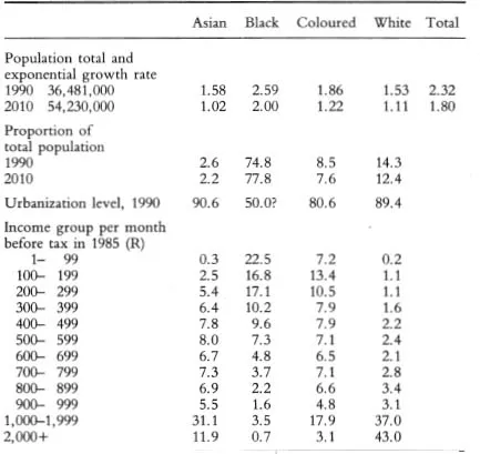 Table 1.1 South Africa: population size, growth rate, urbanization level, racial proportions and income distribution