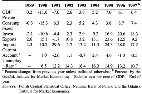 As will be shown, the tendencies visible in Tables 2.1-2.3 did not result from central bank policies alone. Table 2.1 shows that the Polish economy witnessed an economic revival, after an initial economic contraction (1990-1991), mainly due to the stabilization program and the disintegration of the Council for Mutual Economic Assistance (COMECON). In 1994 through 1997, Poland's economy was among the fastest growing in Europe.
