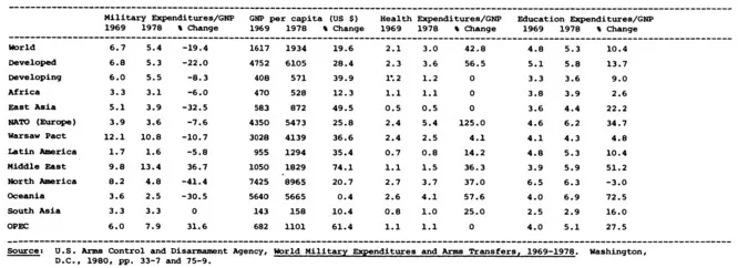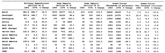 Table 1.1 Military and Social Trends: World, Developed and Developing Countries, and Regions, 1969-1978