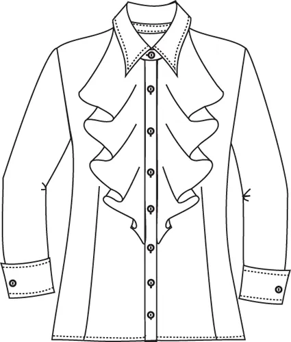 Fig. 1.2 Flounce-front shirt with standard cuffs. Note the flounce is slightly decreased in width, topstitching omitted and cuffs have been revised.