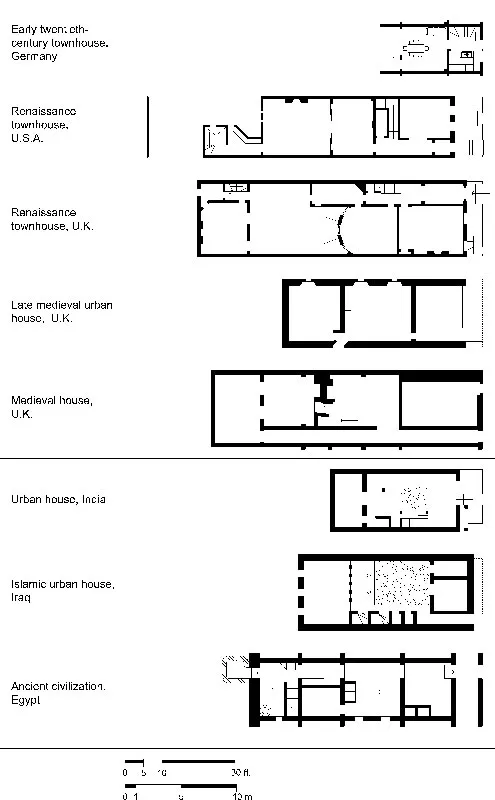 1.1 Selected examples of ground-floor plans of townhouses in various regions and times