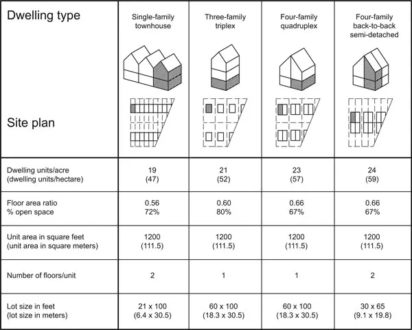 1.3 Comparative densities between single-family townhouses and multi-family prototypes