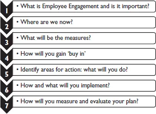 In our work with organisations on implementing engagement programmes, we have used a seven step approach.