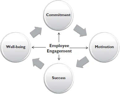 Commitment, motivation, success and well-being – these are four critical words, four compass points, if you will, which will help us direct attention and focus onto improving employee engagement (Figure 1.2). And we notice that the essence of this ‘approach’ is win–win: the organisation is successful (and we’ll look more closely at what ‘success’ means), and the employee experiences ‘well-being’. This, then, is about co-operation – not competition – between leaders and the led, and between management and their staff; this is about a new way of working that stresses not the tangibles – cash flow, revenues, profits, equipment, data bases, offices and so on – but the invisibles: commitment – an attitude; motivation – an energy; success – an outcome; and well-being – a state. Wow! What a shift in thinking – and feeling, if it is possible to do this. And, remember, if we do, we really do, achieve this shift – then we get to the tangibles, especially the profits, tai-chi style!