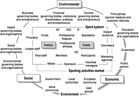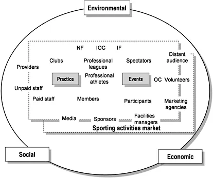 The sporting activities market is open and in constant interaction and interrelation with its environment, which is composed of specific stakeholders with similar economic, social or environmental goals (Figure 1.2).