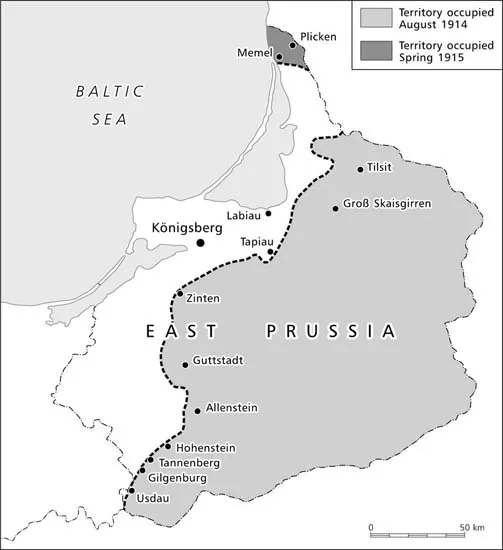 Map 1.1 The First World War in East Prussia.