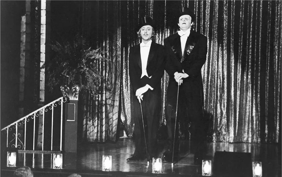 Audiences familiar with Frankenstein’s full adaptation history might find another layer in Young Frankenstein. In one of the film’s most memorable scenes, the Creature dances a duet to Irving Berlin’s ‘Puttin’ on the Ritz’ and performs tricks for treats to a sold-out theatre audience (Figure 1.1).