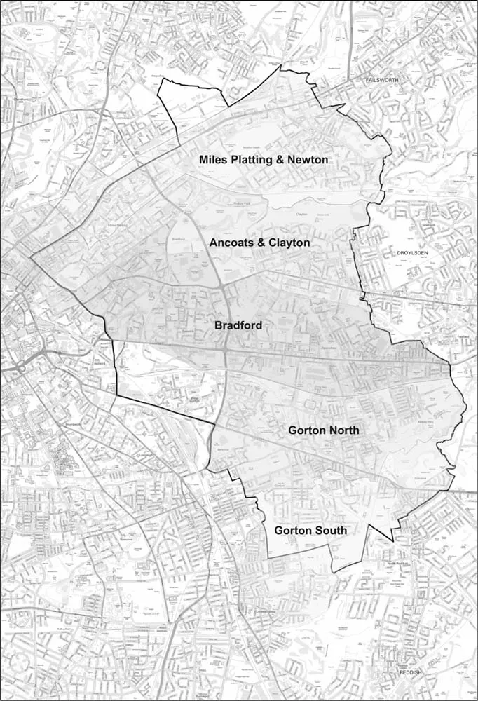 1.1 Map of east Manchesterâs regeneration area with ward boundaries