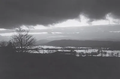 The Severn valley at Welshpool seen from the top of the Breidden Hills, showing the extent of spring flooding.