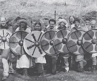 An example of a Dark Age shield-wall provided by various re-enactment groups. (Lucy Corke, Mercian Guard re-enactment group)