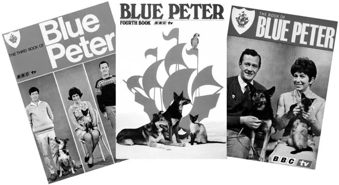 Blue Peter (1958âpresent): BBC TV and BBC1. Nobody ever thought that Blue Peter would evolve into the programme it has become today, or that it would still be running over fifty years down the line. It was first aired on 16 October 1958, and then appeared as a weekly 15-minute programme that was aimed at 5- to 8-year-olds. The first two presenters were Christopher Trace and Leila Williams, winner of Miss Great Britain in 1957. In the programme, Christopher Trace would demonstrate boysâ toys, such as model railways, aeroplanes and trains, and Leila Williams would show girlsâ toys, mainly dolls, and girlsâ hobbies. Occasionally, the artist Tony Hart would appear on the programme, using his drawings to tell childrenâs stories. In the early years there were no Blue Peter badges, pets or ships, and no Blue Peter garden. In 1962, Leila Williams was removed from the programme by its newly-appointed producer and Anita West took over for a short time until Valerie Singleton was appointed in September 1962. Also in 1962, the first Blue Peter pet, Petra the mongrel dog, appeared on the show, but sadly the dog was sickly and died after just one appearance. A lookalike dog replaced her without viewers being told, and the new Petra continued to appear on the show until 1972. In 1963, the first Blue Peter badge was introduced, and that same year Fred the tortoise joined the show. From 1964, the programmeâs running time was extended to 25 minutes and it was shown twice a week, with a more wide-ranging content, including charity appeals and lots of adventure and discovery features. That year, Blue Peter also got its first cat, Jason, a Seal Point Siamese. In 1965, Patch, son of Petra, became part of the team and remained there until 1971 when he died from a rare disease (Shep, a border collie, replaced him). In December 1965, John Noakes joined Singleton and Trace as one of the showâs main presenters. In July 1967, Christopher Trace left and was replaced by Peter Purves. After that, Singleton, Noakes and Purves continued as the showâs main presenters for the remainder of the sixties. The theme tune was a sea shanty called Barnacle Bill.
