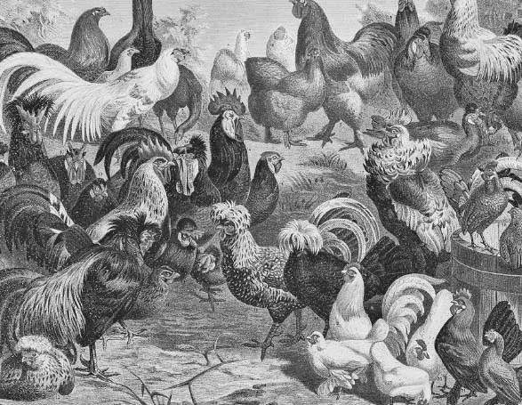 2This nineteenth-century chicken poultry stock illustration indicates the diversity and beauty of various birds.