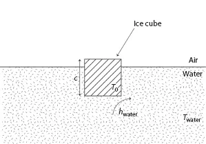 We consider that the ice cube exchanges, by convection, with the rest of the water contained in the glass. Using thermodynamics, we can assume that the exchanged heating power will be