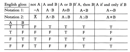 Although syllogistic logic proved useful for capturing a variety of vahd forms for arguments, there were a significant number of arguments that could not be captured. Modern symbolic logic was developed in order to overcome this shortcoming. There are two components of symbolic logic. The first is commonly spoken of as sentential logic or propositional logic, and the second is called quantificational logic or predicate calculus. Sentential logic takes simple complete sentences or propositions such as "it is raining" as units. It then uses truth functional connectives to build more complex, compound sentences. A connective is truth functional if the truth or falsity (truth value) of the compound sentence can be ascertained just by knowing the connective employed and the truth value of the component sentences. Although the connectives of sentential logic are defined in terms of precise rules that deviate from those governing the corresponding English words, the main connectives are generally expressed using the words "not," "and," "or," "if ———, then ...," and "if and only if." Through a device known as a truth table, one can show how the truth values of various compound sentences depend on those of the component sentences (represented by the letters A and B). The truth value of a sentence is indicated by placing a T or F in the appropriate place in the table. The truth tables for sentences formed using the basic connectives just listed are shown here (a common symbol for the connective is indicated below the English statement for the compound): The truth table for most of these connectives is just what one would expect. The troublesome one is the "if A, then B" connective, which is somewhat counterintuitively assigned the truth value true whenever A (the antecedent) is false. Part of the motivation for this interpretation can be captured by considering under what circumstances the statement could be recognized as false. The only such circumstance is where A is true and B (the consequent) is false. One important point to notice, though, is that given this interpretation of the "if———, then ..." connective, it is not proper to think of it as equivalent to implication. Logicians, rather, speak of it as the "material conditional."3
