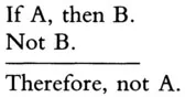 Another very important form, known as modus tollens or "denying the consequent," has the following form: