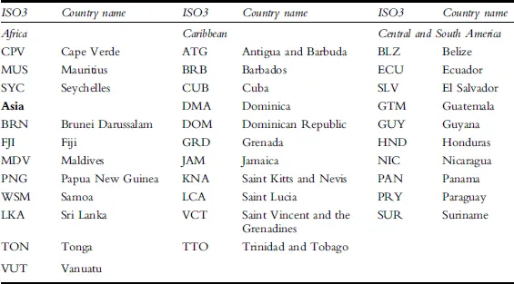 While the Agriculture Draft Modalities list 45 countries as meeting the above criteria, this study includes the 32 small economies which have been most active under the WTO’s Work Programme on Small Economies since its establishment in 2002 (Table 1.1). It should be noted that since trade, and not population or geography, is used as criterion, several small economies covered in this chapter do not meet other criteria discussed above. For instance, Cuba, Dominican Republic, Papua New Guinea, and Sri Lanka have populations larger than 1.5 million, while Central and South American countries are not islands.