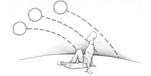 Figure 1.1 shows the relation between the rotation of the Earth on its own axis and the revolution of the Earth around the sun. Drawing this with the axis of rotation vertical shows the December solstice (usually around the 22nd of the month), as the highest point reached by the Earth in its path around the sun, while the other solstice, occurring around 21 June, marks the lowest point of the same path. The equinoxes, occurring about 20 March and 22 September, mark the midpoints of the cycle, where the Earth appears to be level with the sun. The apparent path of the sun is affected by whether the Earth is at a low or high point in its journey around the sun. But how this is seen depends on where you are on the Earth’s surface, with the curvature of the Earth causing viewers at different latitudes to see the same solar path from a different angle. This can be understood by imagining how the sun appears when standing at various latitudes.