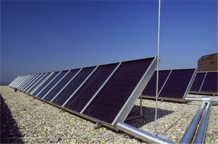 Figure 1.4 A solar collector on a roof is sometimes fitted with accompanying valves
