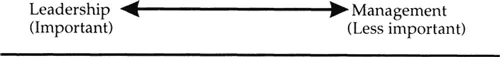 FIGURE 1.1. VIEW OF MANAGEMENT AND LEADERSHIP AS OPPOSITES ON THE SAME CONTINUUM