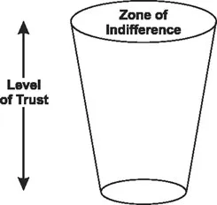 The essential link between leadership and the size of othersâ zones of indifference is the level of trust that the leader has established. The higher the level of trust someone has, the larger the zone of indifference.