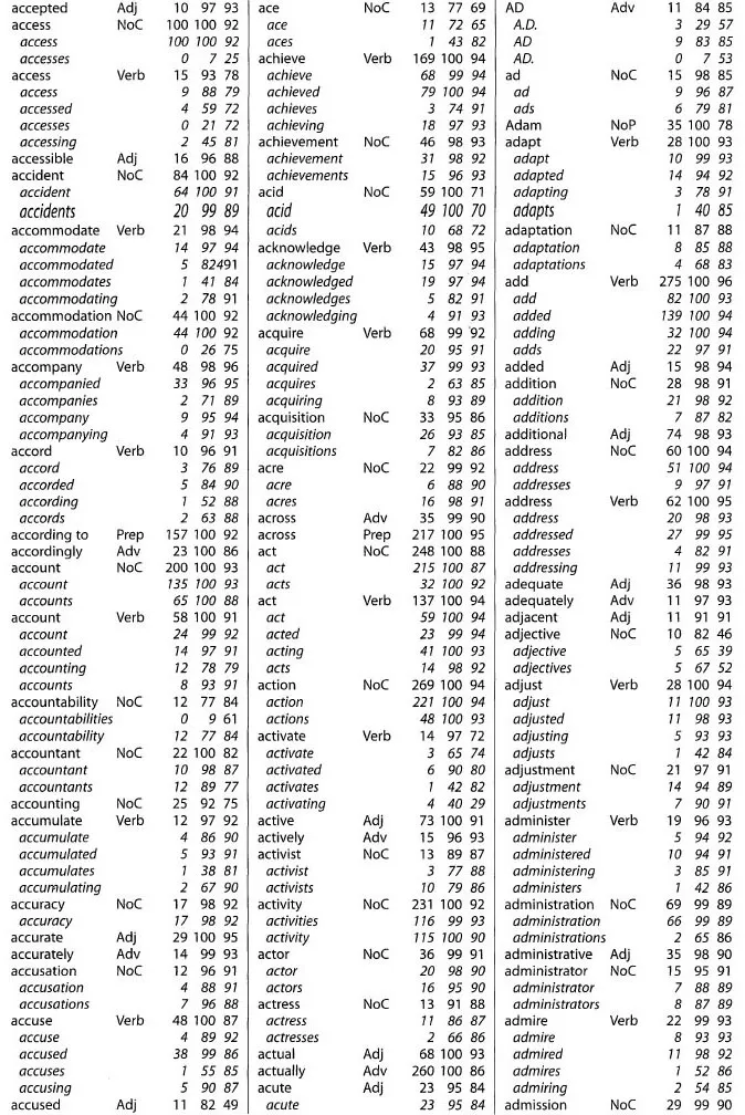 Word | = | Word type (headword followed by any variant forms)—see pp. 4–5 |