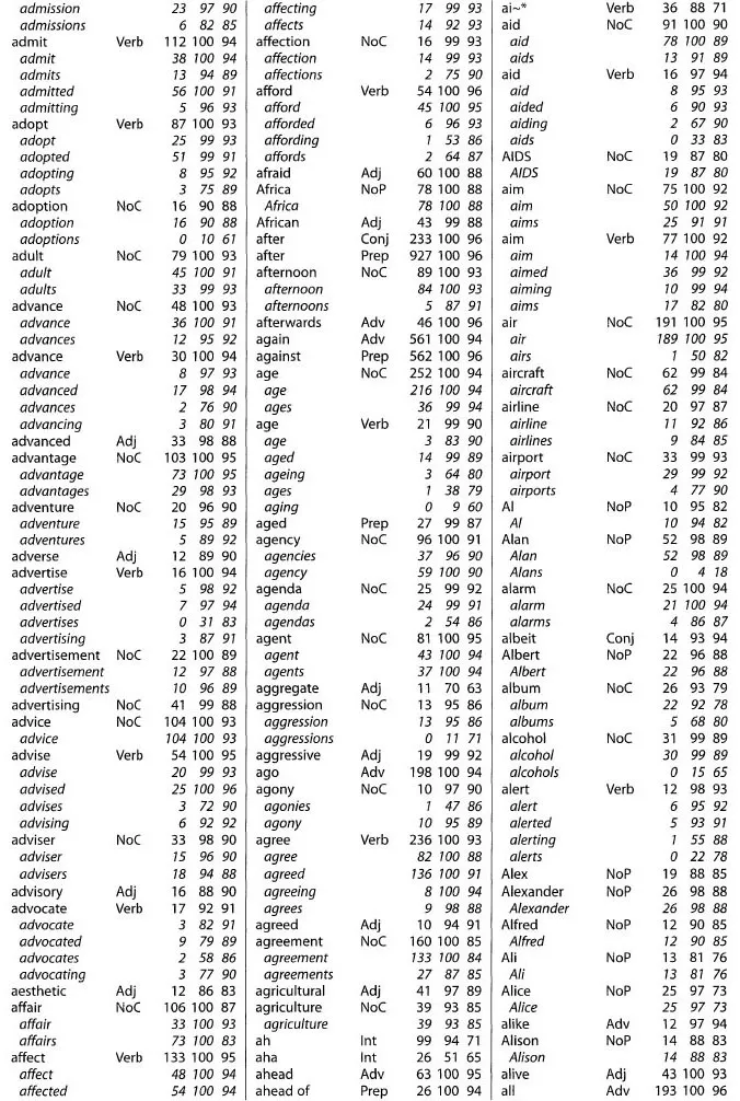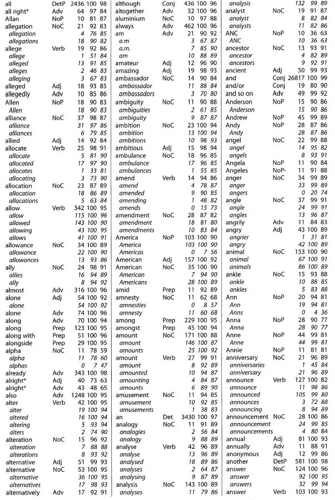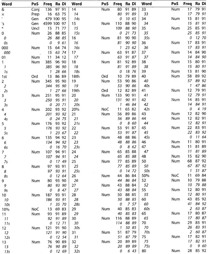 - 5. Rank Frequency Lists of Words within Word Classes (Parts of Speech)