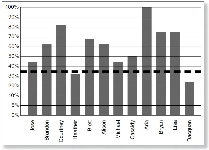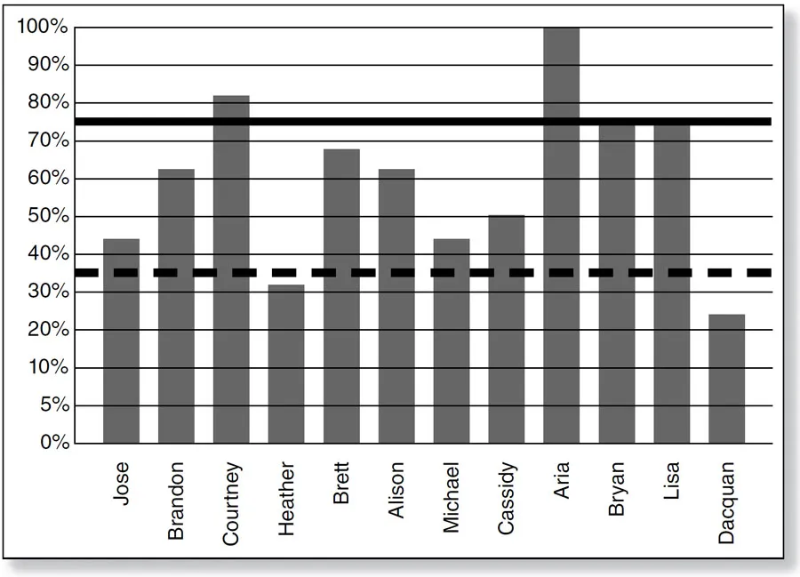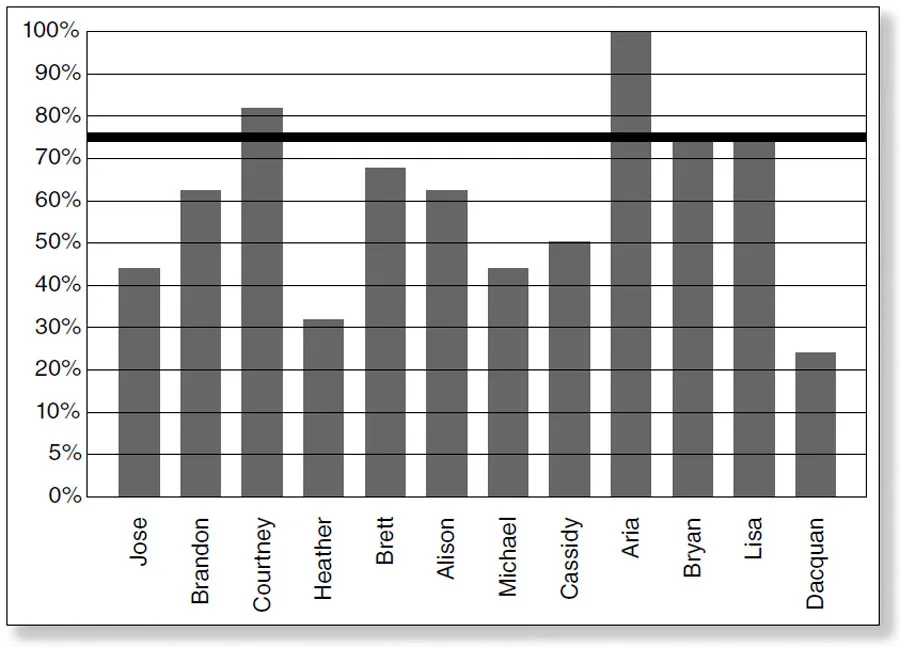 â Figure 1.3 Class Mastery Graph (Overall Percentage Score for Each Student with the Line for Mastery)