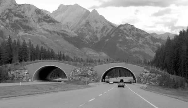 A Trans-Canada Highway ‘wildlife crossing’, one of many structures that successfully provide Yellowstone to Yukon connectivity conservation across an otherwise dangerous barrier for wildlife