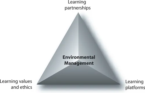 Social change is now inevitable, whether or not we choose to act. Faced with the facts, most of us will want to re-orient society and our approaches to environmental management in order to sustain our planet and ourselves. Now, more than ever, we have a strong motivation for a new approach to environmental management based on three new agendas. Firstly, we need equitable learning partnerships between the combined expertise of communities, professions and governments. Secondly, we need learning platforms that enable interdependent individuals and groups concerned with common environmental issues to meet and interact in forums to resolve conflicts, learn collaboratively and take collective decisions towards concerted action (Röling, 2002). Thirdly, social change requires a transformation in our thinking and in the learning values and ethics that underpin learning processes (see Figure 1.1). As noted by Einstein, ‘you can’t solve a problem with the same thinking that created it’.