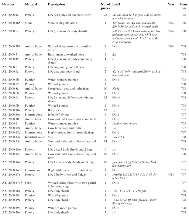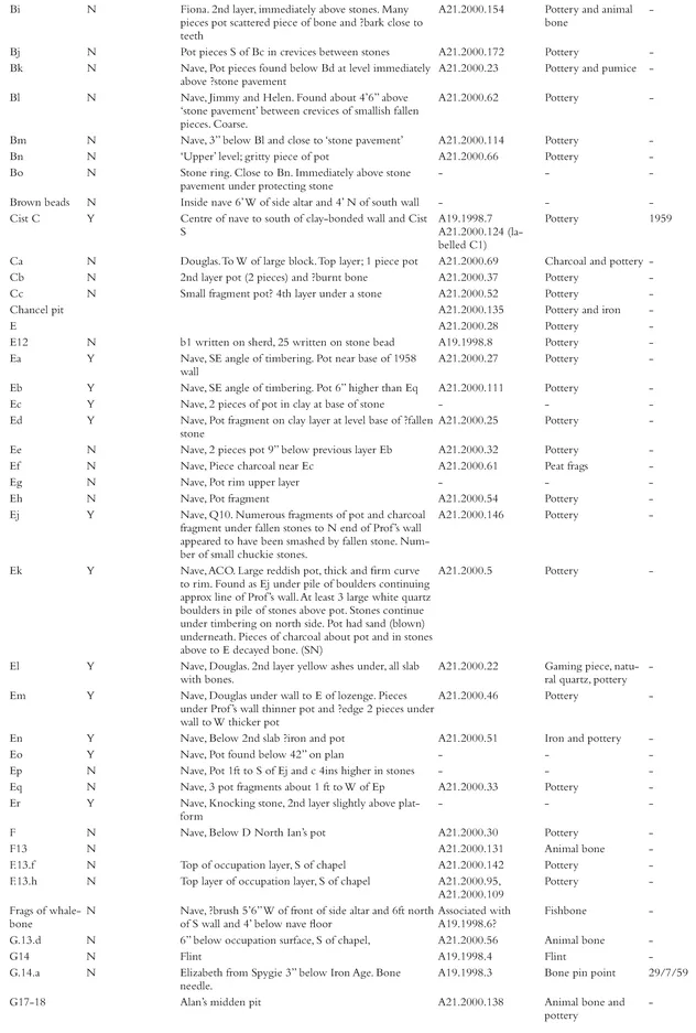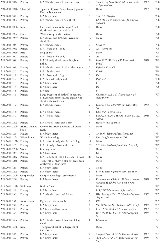 - Appendix 5. Finds from the 1999โ2000 excavations by phase, context and small find number