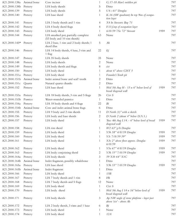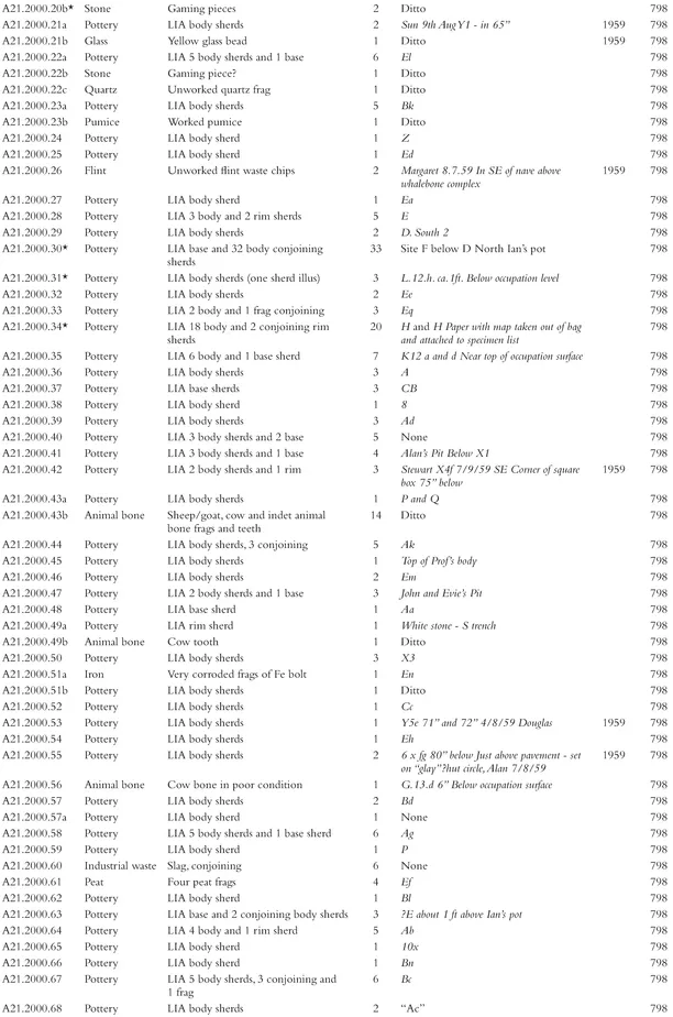 - Appendix 6. Catalogue of quartz collected from the 1999-2000 excavations