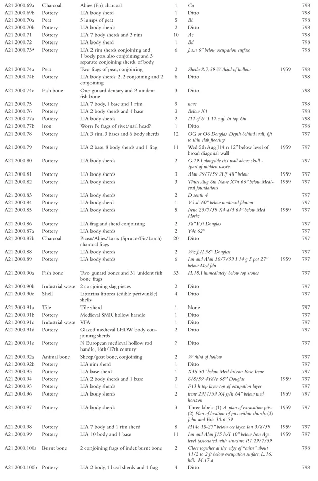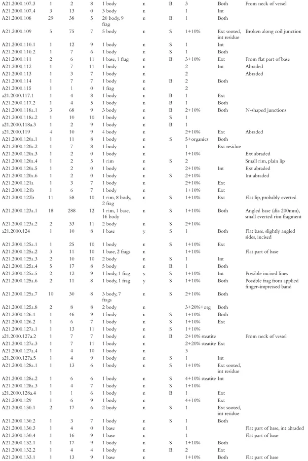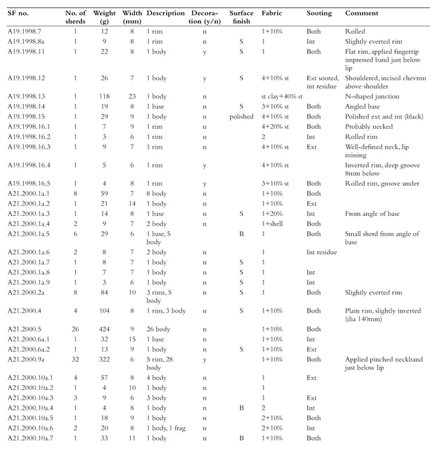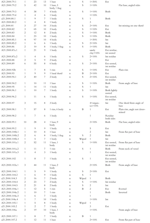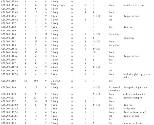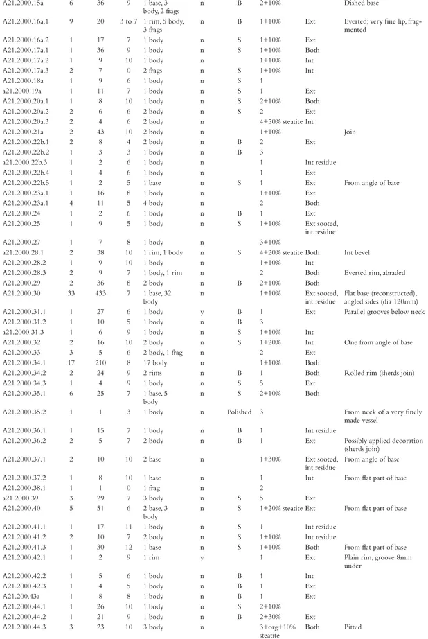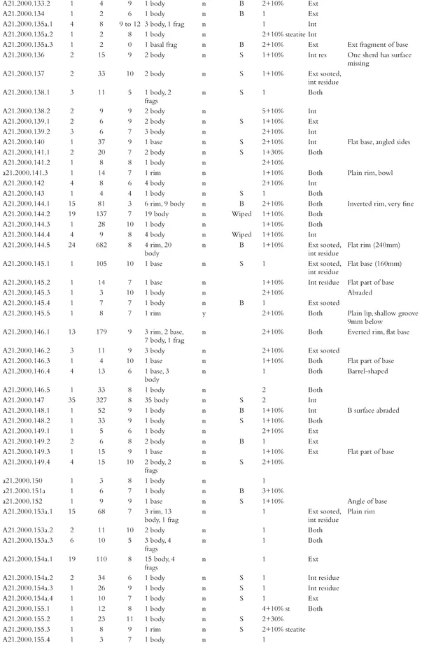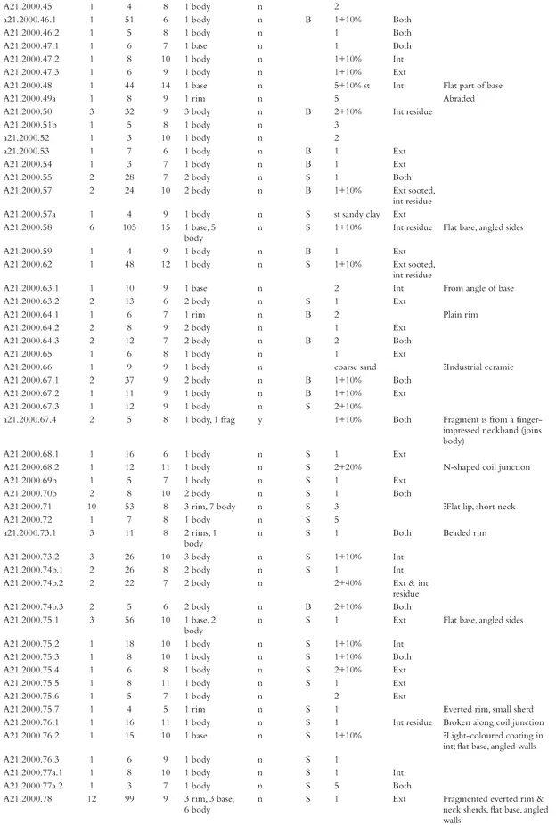 - Appendix 7. Catalogue of coarse pottery from the 1999โ2000 excavations by phase, context and small find number