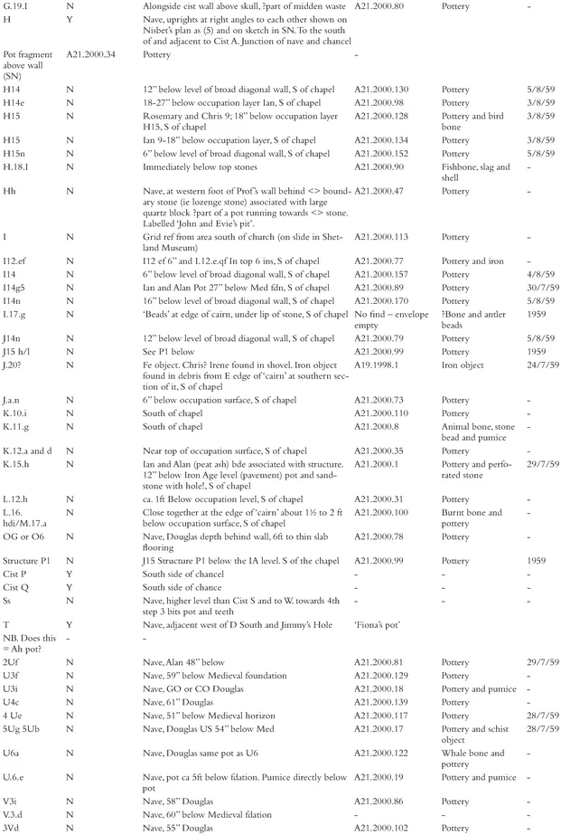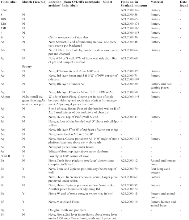 - Appendix 1. Finds in the Shetland Museum from O'Dell's excavations in 1958-59