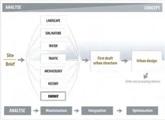 The approach is slightly different in Germany where the case studies demonstrate a willingness on the part of some municipalities to commission detailed analysis and shading simulations of urban renewal or development areas and use the results to inform developers and building designers. At Gelsenkirchen-Bismark, for example, an overall urban plan was developed which included a simulation of shading and solar irradiation on building surfaces. The initial draft of the area plan, with building massing and layout was evaluated and some modifications suggested regarding the height and distance between the buildings in order to provide each building with an ideal sun exposure. To avoid major shading of the building surfaces an advisory committee was formed to assist individual investors.