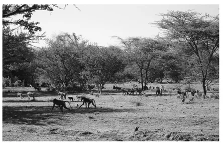 A more accurate view of hamadryas behavior came from the pioneering work of Hans Kummer and Fred Kurt in 1960 near Erer Gota, Ethiopia, about 180 km northeast of the Awash National Park (see Figure 1-1). Kummer and Kurt spent 12 months surveying baboon troops and collecting behavioral data on several bands in the Erer Gota area. It was this research that first documented the multilevel social structure of ...