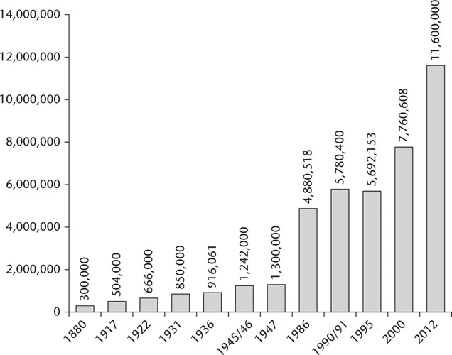 Figure1.1 Growth of the Palestinian people, 1880ā2012